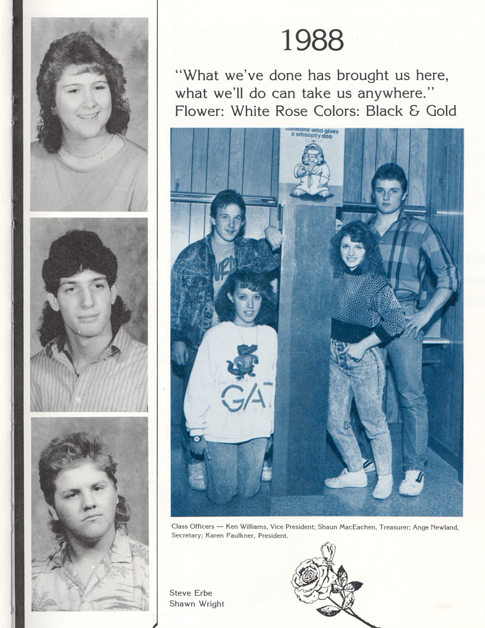 1989 Ada High School, Page 15: Melissa Donegan, William G. Fuqua, Ken J. Williams, Steve Erbe, Shawn Wright.