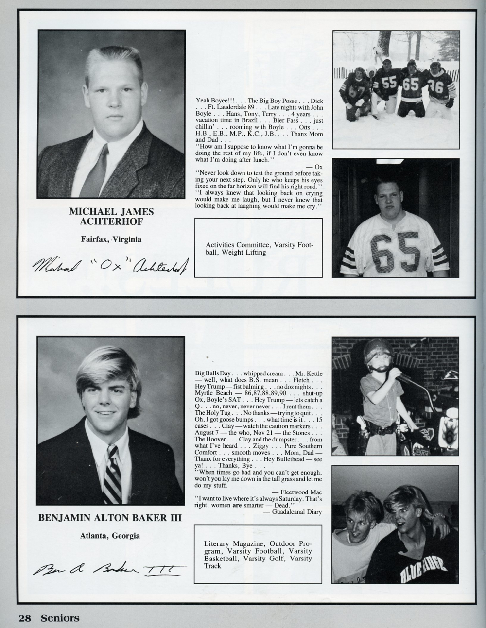 1990 Blue Ridge High School, Page 28: Michael James Achterhof, Benjamin Alton Baker III.