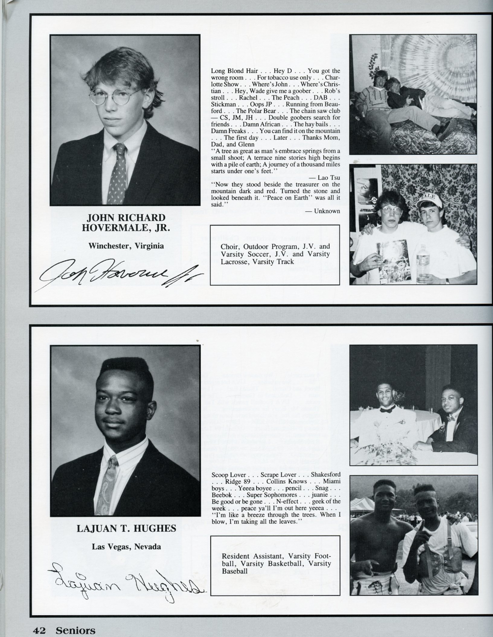 1990 Blue Ridge High School, Page 42: John Richard Hovermale Jr., Lajuan T. Hughes.