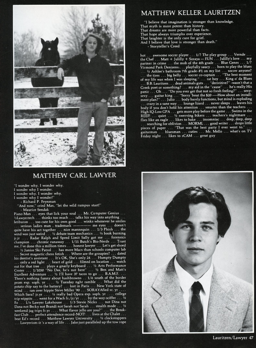 1992 University School of Milwaukee High School, Page 47: Matthew Keller Lauritzen, Matthew Carl Lawyer.