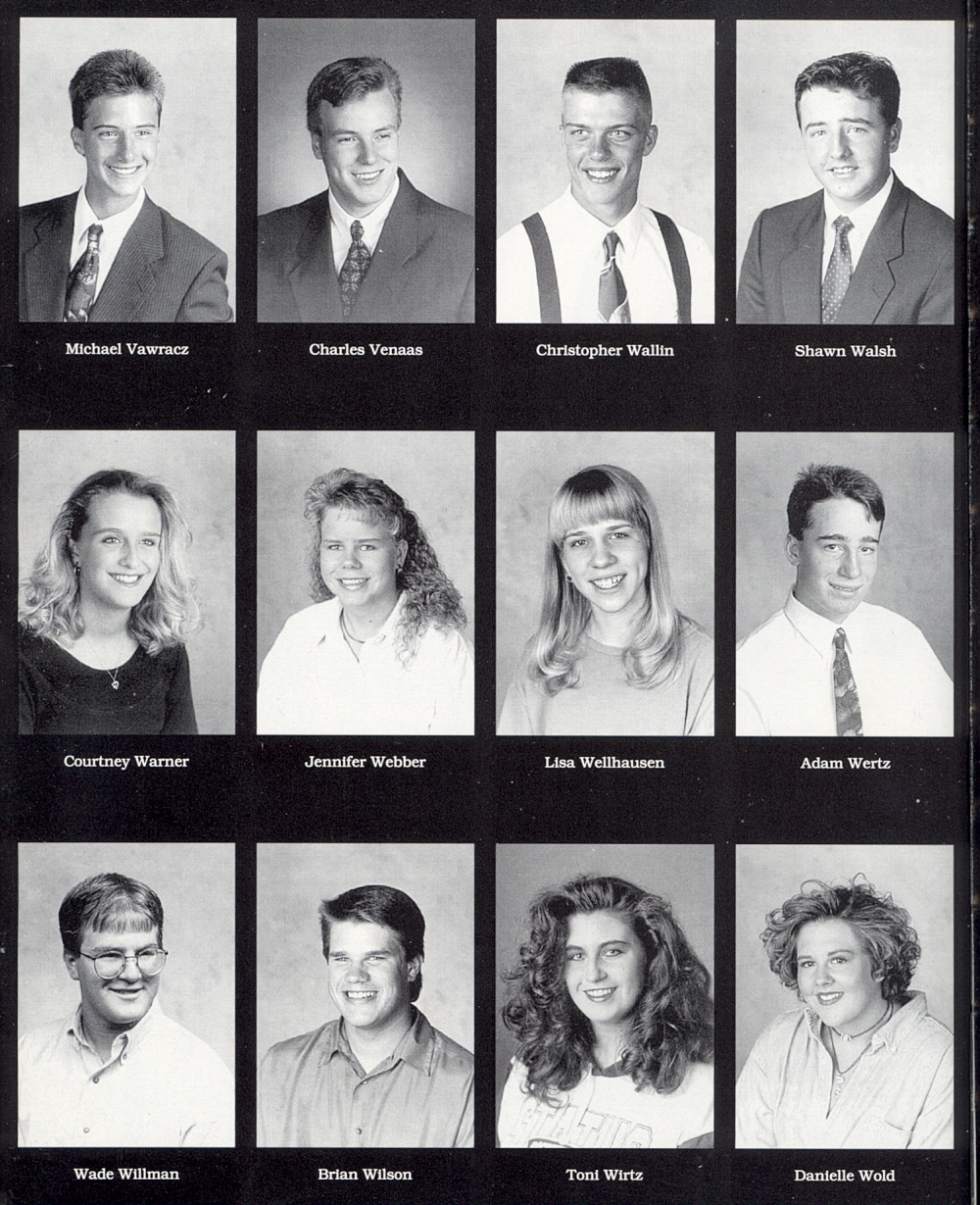 1994 Spring Lake Park High School, Page 54: Michael Vawracz, Charles Venaas, Christopher Wallin, Shawn Walsh, Courtney Warner, Jennifer Webber, Lisa Wellhausen, Adam Wertz, Wade Willman, Brian Wilson, Toni Wirtz, Danielle Wold.